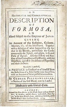 French writer George PsalmanazarGeorge Psalmanazar (1679–1763)Bornc. 1679–1684South FranceDied(1763-05-03)3 May 1763 (aged 78-84)EnglandOccupationMemoirist, imposterKnown forFormosan culture memoir hoax George Psalmanazar (c. 1679 […]