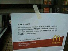 As an insurance measure due in part to a recent string of robberies, African-American customers are now required to pay an additional fee of $1.50 per transaction.