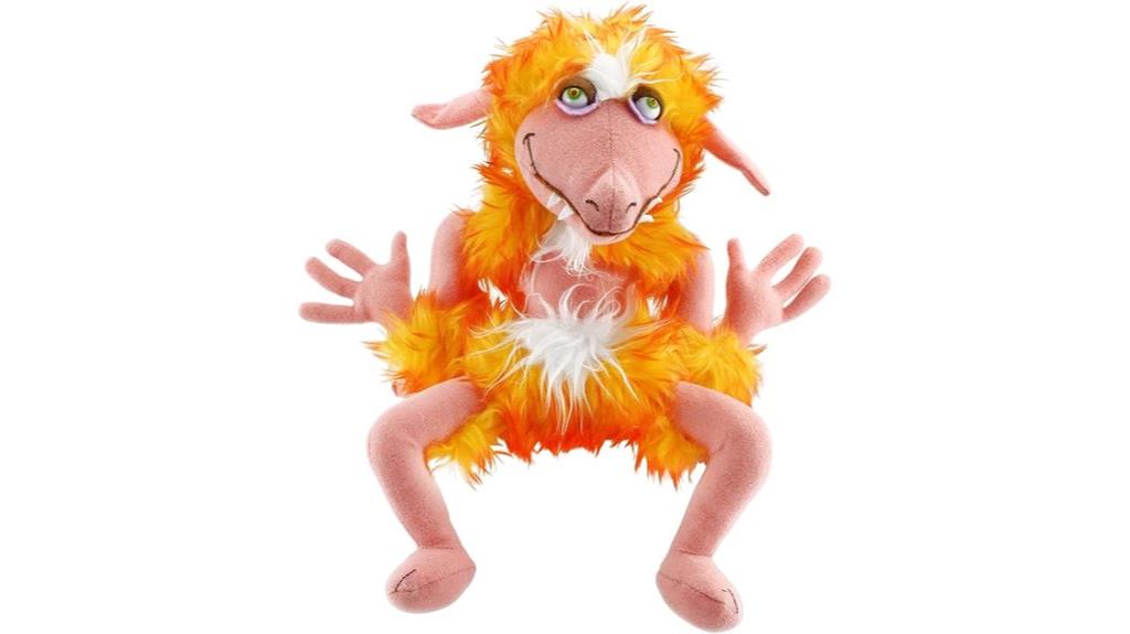 Toy Vault’s officially licensed Labyrinth Firey plush stands 13 inches tall and uses a 100% polyester shell with robust seams for durability. The peach, orange, yellow, and white palette captures the film’s flame-like hues. Detachable arms and legs attach via sturdy connectors for repeated posing, making it display-friendly. The fabric resists pilling under light handling. Sized for standard shelves, it suits collectors and nostalgic fans. Tag integrity and set pairing affect value. More specifics and buying considerations follow.
